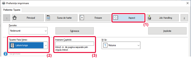 Pentru informații privind funcția "Tiparire Fata-Verso", vezi "IMPRIMARE FAŢĂ-VERSO".
