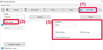 Dacă opțiunea „Restricționarea Lucrărilor de Tipărire” este activată în setările sistemului