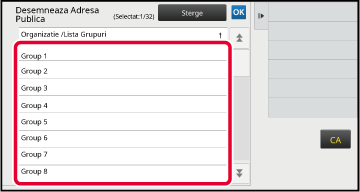 Se pot specifica până la opt grupuri. După ce setările sunt finalizate, atingeţi scurt