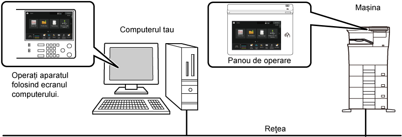 Operați echipamentul de la distanță pe computer sau pe un dispozitiv mobil, cum ar