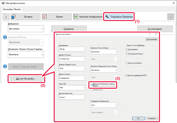 Границы символов текста и графических изображений можно делать более или менее резкими. Авто: Выполнение оптимального улучшения изображения. Выкл.: Улучшение изображения не применяется. Резкое: Улучшение изображения применяется резко. Мягкое: Улучшение изображения применяется мягко. |