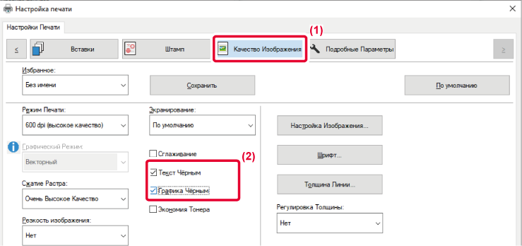 Контуры изображений сглаживаются с применением технологий повышения разрешения (RET). Этот параметр служит для обработки изображения с целью повышения разрешения и сглаживания его зазубренных краев. |
