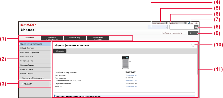В этом разделе описаны типовые элементы, используемые при работе в режиме настройки.