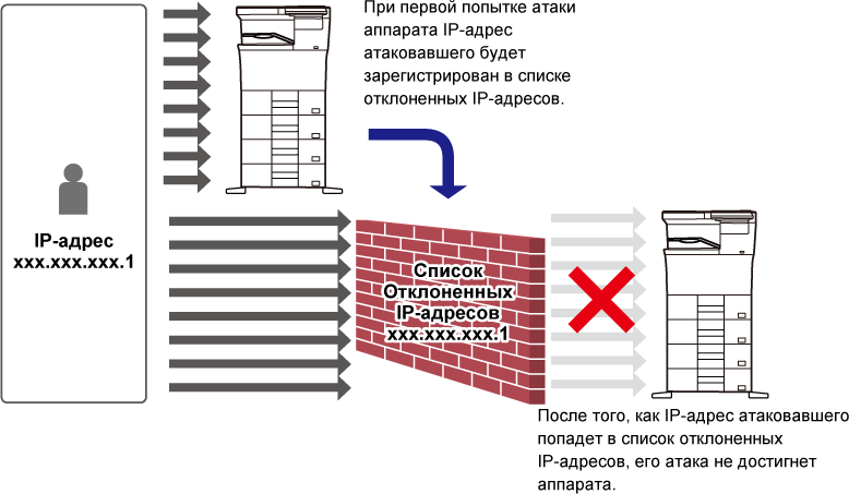 Укажите в качестве функции для ограничения заданий печати хранение документов или разблокировку печати. Когда указано хранение документов и в качестве операции ограничения выбрано [Принудительное удержание], задание сохраняется для хранения документов, даже если хранение документов не указано в драйвере принтера. Также, если указана разблокировка печати, документ сохраняется для разблокировки печати, даже если разблокировка печати не указана в драйвере принтера. |
