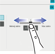 C. Ťukaním na uvedené tlačidlo zvýšite alebo znížite hodnotu. Dlhý dotyk zvyšuje alebo