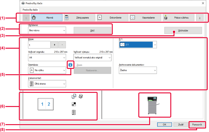 [Usporiadanie]: Vyberte funkcie, ktoré sa týkajú rozloženia, ako je obojstranná tlač