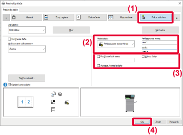 každej tlačovej úlohy. To sa vykonáva zadaním informácie o overovaní v dialógovom