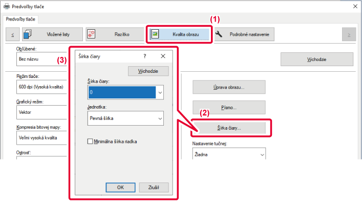 Keď údaje obsahujú čiary rozličnej šírky, všetky čiary je možné vytlačiť s minimálnou