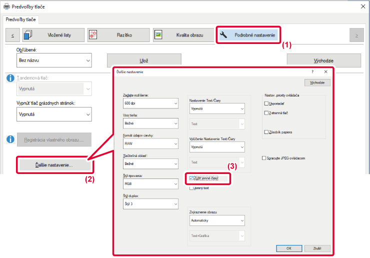 Táto funkcia zväčšuje hrúbku celej čiary, keď tlačené čiary nie sú dostatočne jasné
