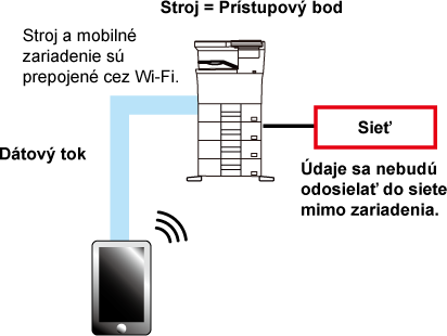 Zariadenie a mobilné zariadenie komunikujú priamo cez Wi-Fi. Komunikácia so sieťou,