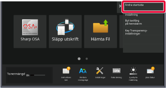 Inställningarna lagras i maskinen och aktiveras.Det finns flera förinställda startskärmslayouter lagrade i maskinen. Det finns bland