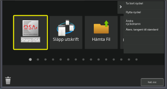 Inställningarna lagras i maskinen och aktiveras.Det här avsnittet beskriver hur du flyttar en snabbknapp på startskärmen.