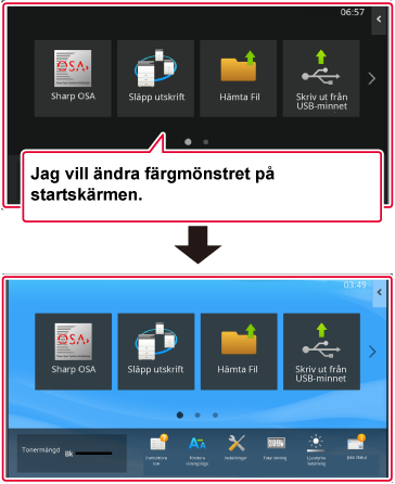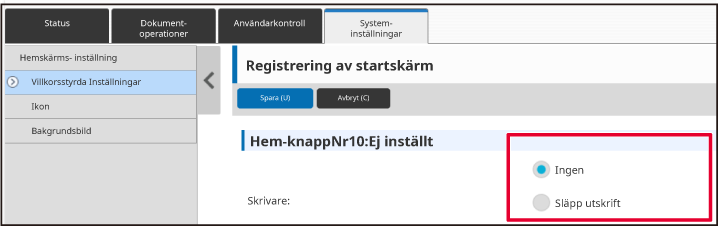 Inställningarna lagras i maskinen och aktiveras.Du kan ändra läget för knappen [Hemskärm].