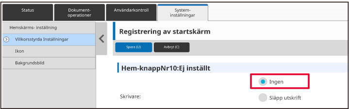 När du klickar på knappen [Spara] stängs skärmen [Registrering av startskärm].Klicka på knappen [Spara] när du har konfigurerat inställningarna.
