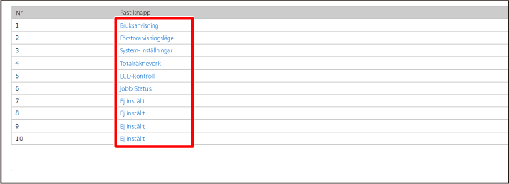 Inställningarna lagras i maskinen och aktiveras.Du kan ändra de fast inställda knapparna. De fast inställda knapparna ändras på webbsidan.