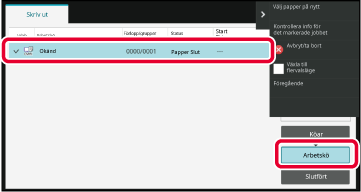 Tryck på [Köar], [Arbetskö] eller [Slutför] för att gå från jobblistan till en individuell
