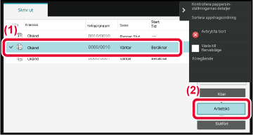 Tryck på det jobb som ska prioriteras och tryck sedan på [Sortera uppdragsordning] på åtgärdspanelen.