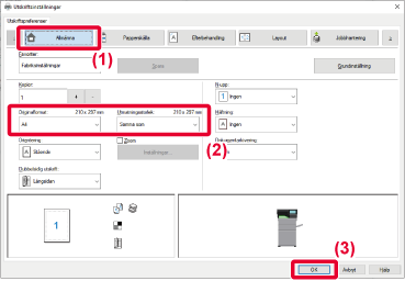 ställts in väljer du pappersformatet för utskrift i ”Utmatningsstorlek”.