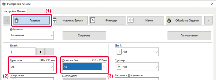 I följande exempel beskrivs hur ett dokument med A5- eller fakturaformat skrivs ut