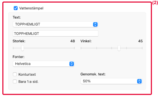 som en vattenstämpel. Storleken och vinkeln på vattenstämpelns text kan justeras.