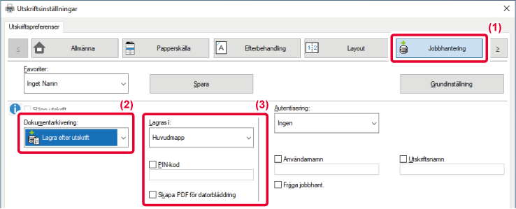 När användarautentisering är aktiverat på maskinen skrivs alla utskriftsjobb från