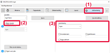 - Välj [Jobbhantering] i ”Skrivaralternativ”.