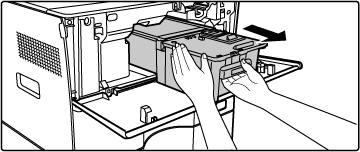 Toner kartuşunu gösterildiği şekilde iki elle tutun ve yavaşça makineden dışarı çekin.