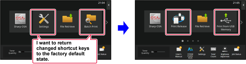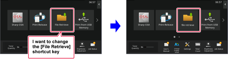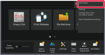 Ayarlar makineye kaydedilir ve uygulanır.Bu bölümde ana ekrandaki bir kısayol tuşunu değiştirme işlemi açıklanmaktadır.