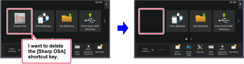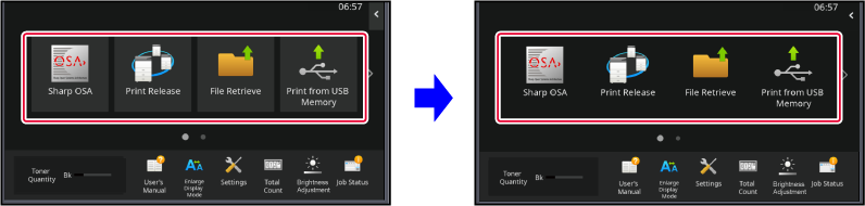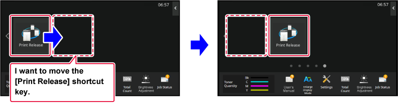 Ayarlar makineye kaydedilir ve uygulanır.Bu bölümde ana ekrandaki bir kısayol tuşunu taşıma işlemi açıklanmaktadır.