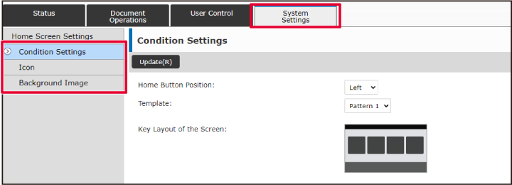 Varsayılan fabrika ayarlarında, IP adresini girdikten sonra kullanıcı parolanızı girmeniz gerekir.Web sayfasında, [Sistem Ayarları] sekmesini ve → [Ana Ekran Ayarı] bölümünü tıklayın.