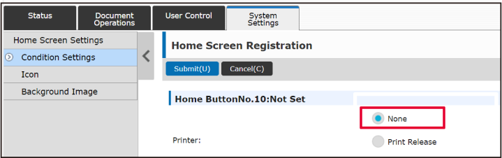 [Gönder] düğmesini tıkladığınızda, [Ana Ekran Kaydı] ekranı kapanır.Ayarları yapılandırmayı tamamladığınızda, [Gönder] düğmesini tıklayın.