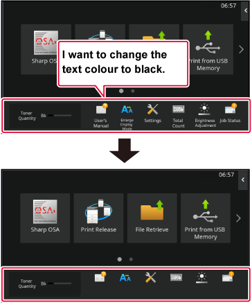 Ana ekrandaki işlem panelini açın ve [Ana Menüde Metin Rengini Değiştir] tuşuna dokunun.