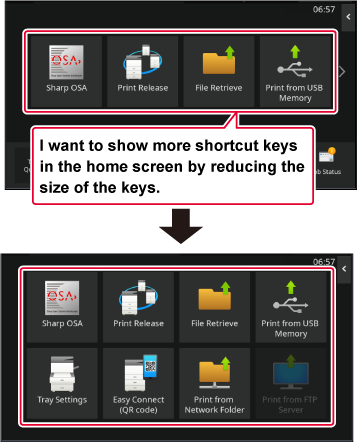 Ayrıca kısayol tuşlarının görüntülenme düzenini değiştirebilir ve makinenin kullanımını
