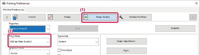 "Yazdırma modu" (çözünürlük) için aşağıdaki üç seçenek kullanılabilir: