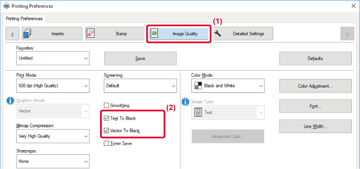 düğmelerini tıklatın.Renkli bir görüntüyü gri tonlamalı yazdırırken, soluk renkli metin ve çizgiler siyah