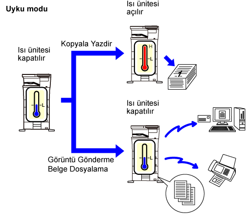 Bu mod ısıtma ünitesinin sıcaklığını düşürür ve makinenin düşük güç tüketim durumunda