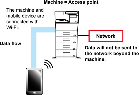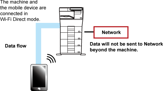 Makine ve mobil cihaz Wi-Fi üzerinden doğrudan iletişim kurar. Bu modda, makinenin