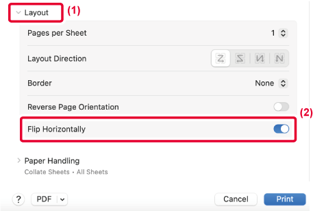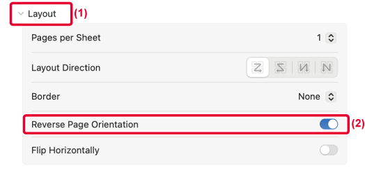 This feature rotates the image 180 degrees so that it can be printed correctly on