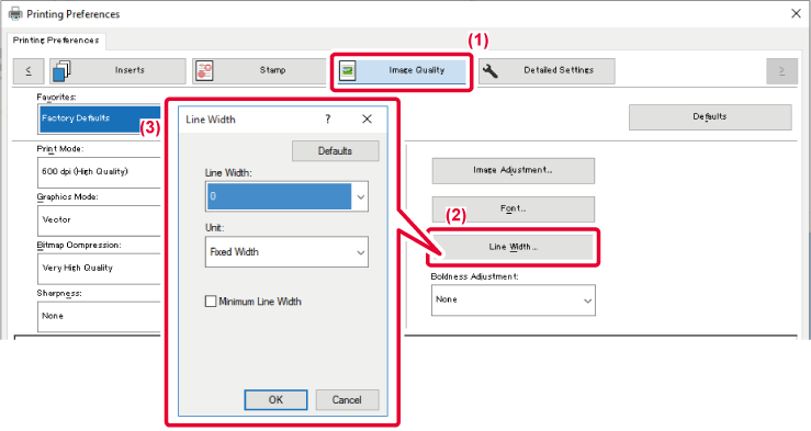 When the data includes lines of varying widths, you can print all lines at the minimum