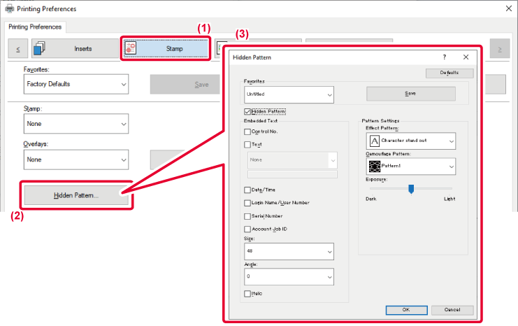 - Configure the settings for hidden pattern printing and click the [OK] button.
