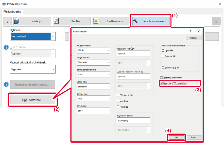 - Potom klikněte na zaškrtávací pole [Zpracujte JPEG ovladačem], až se zobrazí