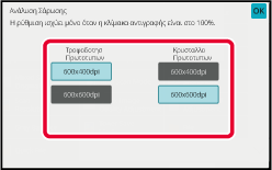 Μπορείτε να καθορίσετε την ανάλυση τόσο στον τροφοδότη πρωτοτύπων όσο και στο κρύσταλλο πρωτοτύπων. Αφού ολοκληρώσετε τις ρυθμίσεις, πατήστε διαδοχικά το πλήκτρο [OK] και το πλήκτρο [Προηγούμεν].