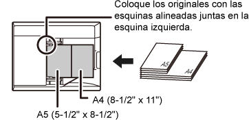 Inserte los originales con las esquinas alineadas en la esquina izquierda de la bandeja del alimentador de documentos.