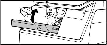 Puxe a caixa de agrafos para fora e para a direita.