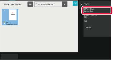 → [Durum Ayarlari] → [Önizleme Ayarı] → [Alınan Veri Görüntü Kontrolü Ayarı] seçeneği