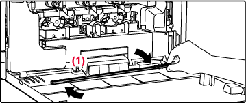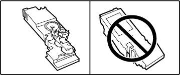Při pokládání vyjmuté tonerové kazety je třeba ji položit ozubenými koly nahoru.