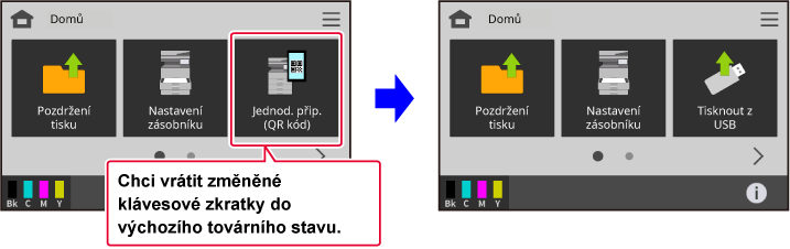 Nastavení jsou uložena v produktu a použita.Nepotřebné klávesové zkraty lze smazat.