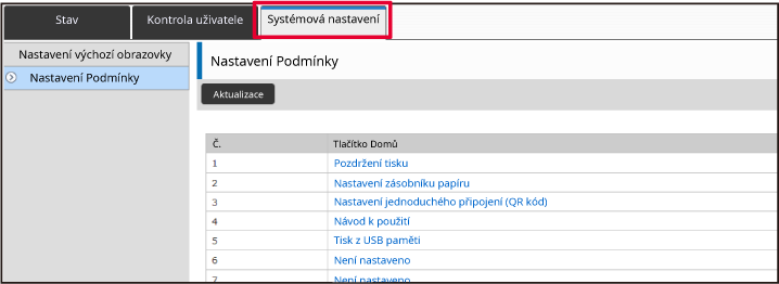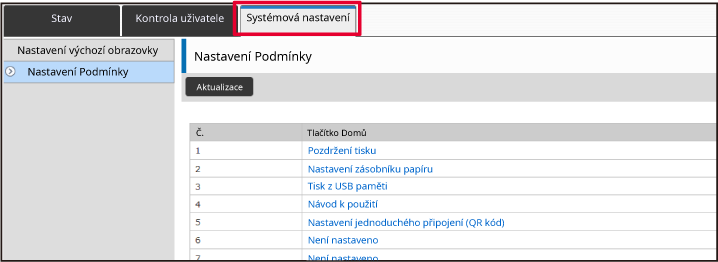 Některá nastavení mohou vyžadovat, abyste po kliknutí na [Nastavení výchozí obrazovky] zadali své uživatelské heslo. Pokud jste neprovedli ověření uživatele, musíte zadat heslo administrátora.