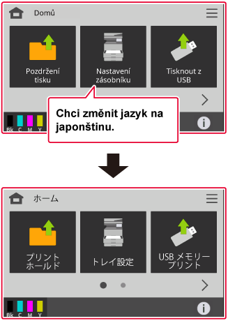 zařízení se jazyk vrátí k výchozímu nastavenému jazyku zobrazení.