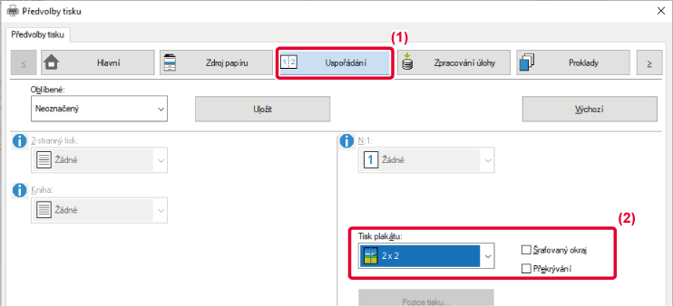 3. Pokud chcete tisknout hraniční čáry a/nebo použít funkci překrytí, zaškrtněte odpovídající políčka, až se zobrazí .